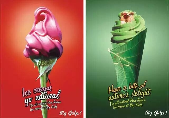 最纯正的味道是什么样的?当然是刚生长出来的,BigGulp冰淇淋用最天然的食材制作出最美味的食品。把产品比喻成对应口味的植物来证明我们是原味的。