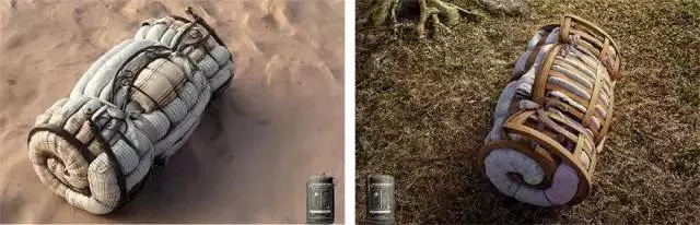 为说明睡袋的舒适度。把床打包成了睡袋的形状,借用床的舒适性去影射此睡袋的舒适度是多么的高。