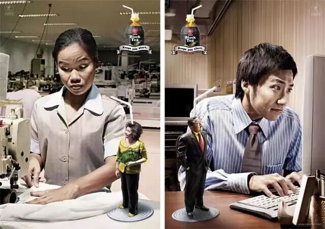 当你的老板在一旁盯着的时候,估计你是不敢偷懒的。上好佳黑茶饮料让你时刻保持清醒~
