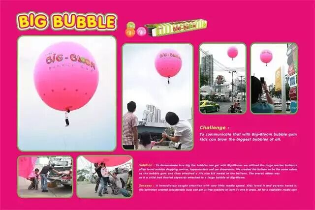 泡泡糖的广告,自创载体,再结合产品功能特点的夸张,此时的创意就具有了很强的互动性和轰动效果,作品本身透露出一种极强的辐射力,让行人瞠目结舌,并议论纷纷。制造轰动却引来一片关注,这就是“环境媒体”的魅力。