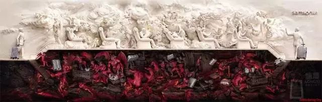 2011年嘎纳广告节的全场大奖《天堂与地狱篇》的Idea即是如此,这个Idea便用一种对比的方式去呈现新秀丽旅行箱的坚固。旅程中,旅客在享受着天堂般的待遇,行旅箱却遭受着地狱般的折磨,旅途结束,行旅箱完好无损地回到旅客手中”。