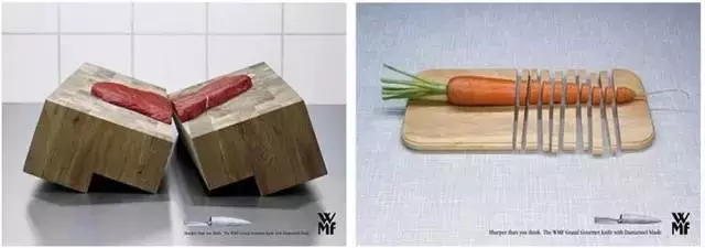 WMF刀具——不好意思,太锋利了,没控制住。顾客不是要锋利吗?那就别满足于切菜斩肉,人家刀口断砧板给你看。